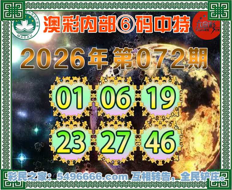 072期:【澳彩内部】 🌅⑥码中特🌅【01.06.19.23.27.46】开:46