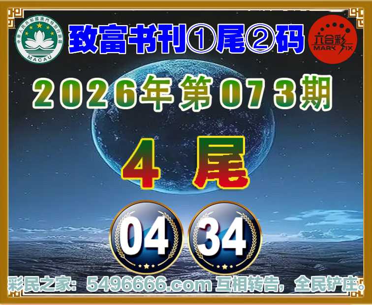 073期:『致富书刊』 🥩①尾②码🥩【4尾主:04.34】开:34