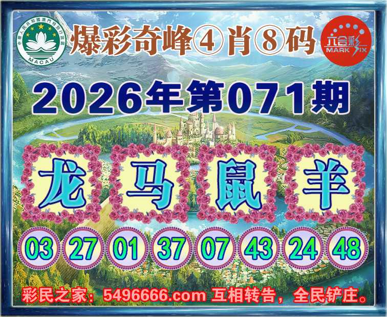 071期:《爆彩奇峰》 🍟④肖⑧码🍟【龙马鼠】开:羊48