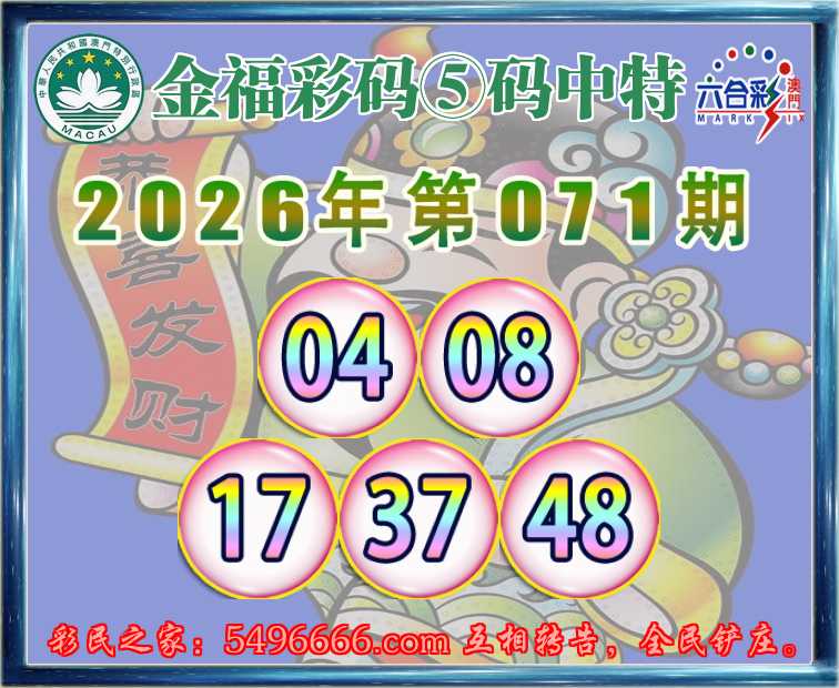 071期:『金福彩码』 🥓⑤码中特🥓【04.08.17.37.48】开:48