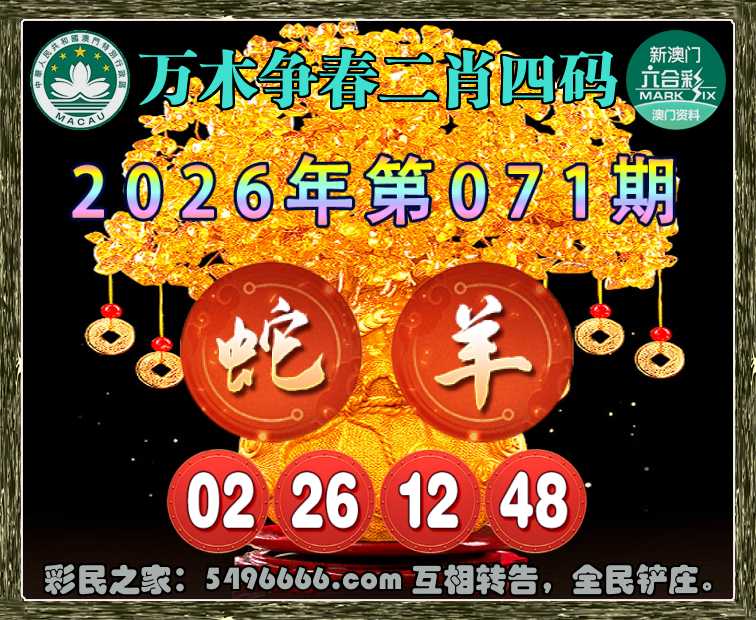 071期:【万木争春】 🤘二肖四码🤘【蛇】【02.26.12.48】开:羊48