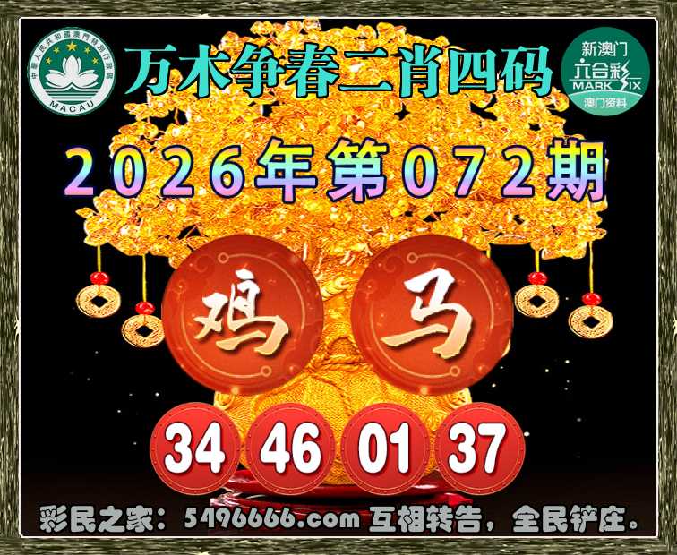 072期:【万木争春】 🤘二肖四码🤘【马】【34.46.01.37】开:鸡46