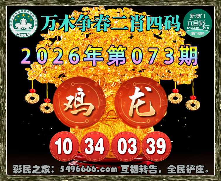 073期:【万木争春】 🤘二肖四码🤘【龙】【10.34.03.39】开:鸡34