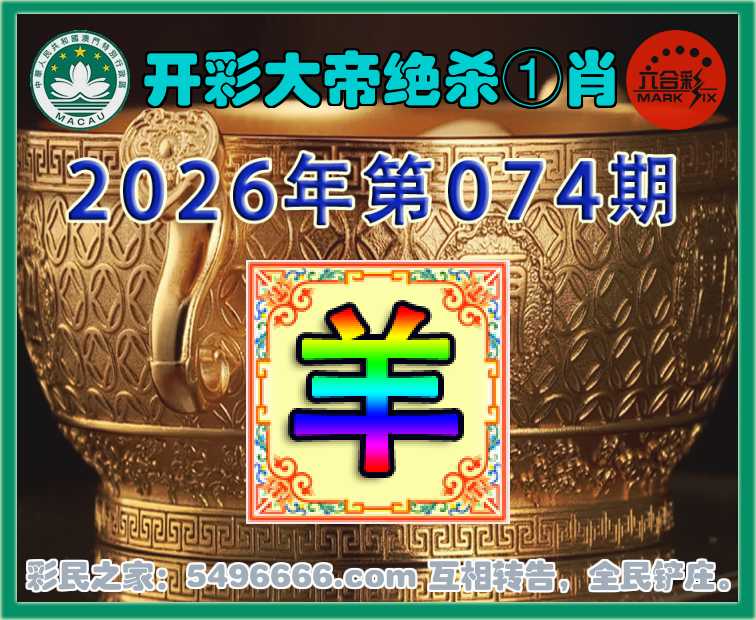 074期:【开彩大帝】 🌷绝杀①肖🌷【羊】开:00准