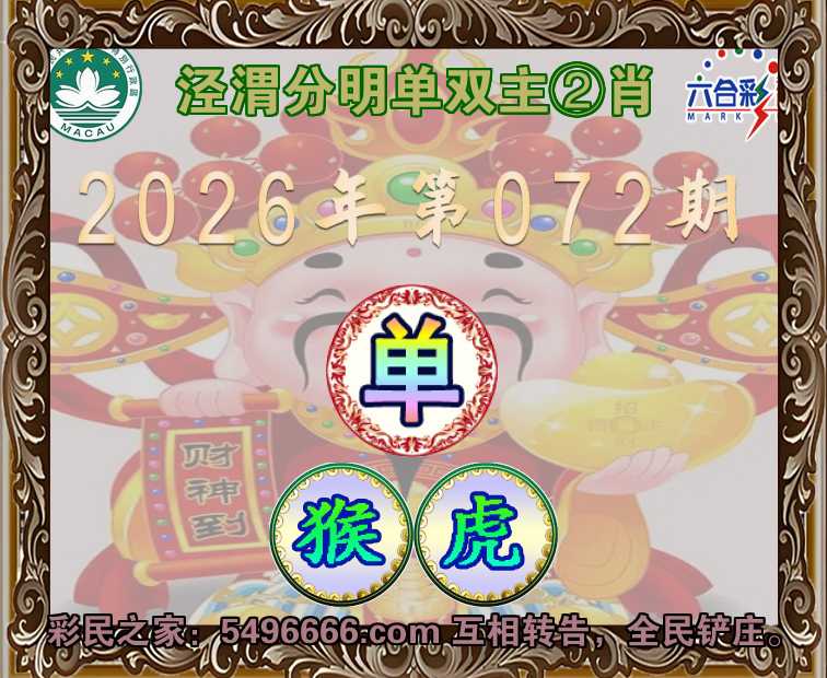 072期:〖泾渭分明〗 🧧单双主②肖🧧【单-猴虎】开:鸡46