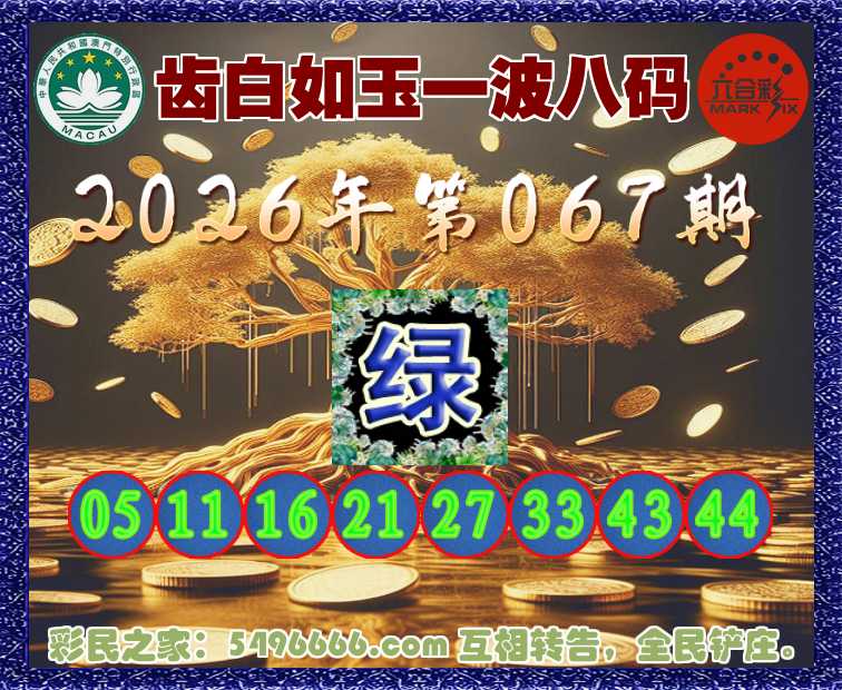 067期:『齿白如玉』 🥼一波八码🥼【绿波】开:虎05