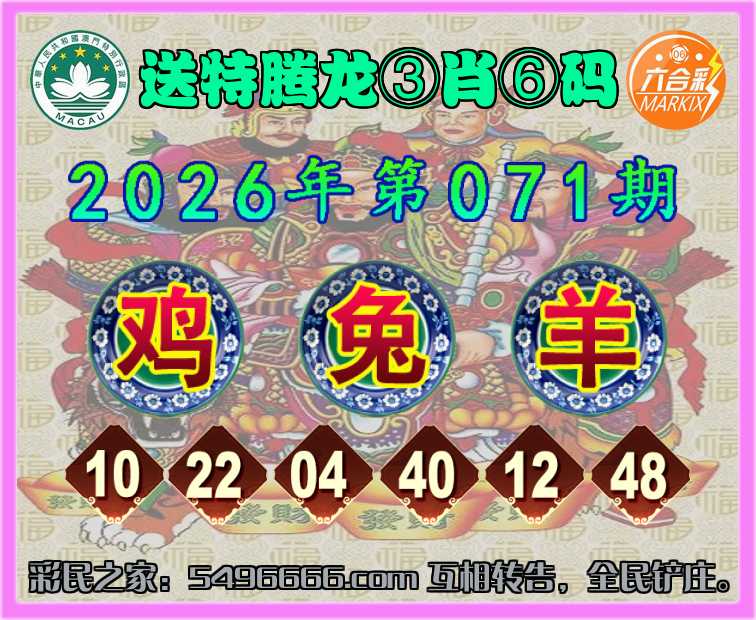 071期:『送特腾龙』 🧶③肖⑥码🧶【鸡兔】开:羊48