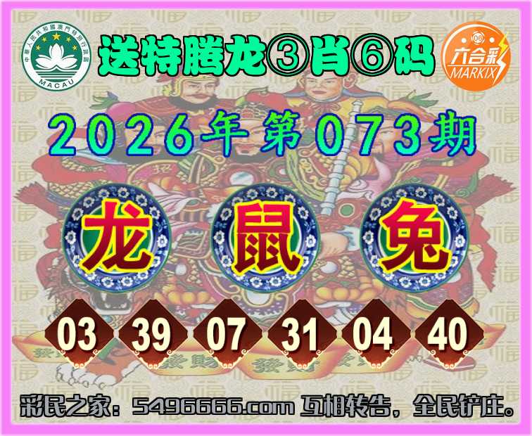 073期:『送特腾龙』 🧶③肖⑥码🧶【龙鼠兔】开:鸡34