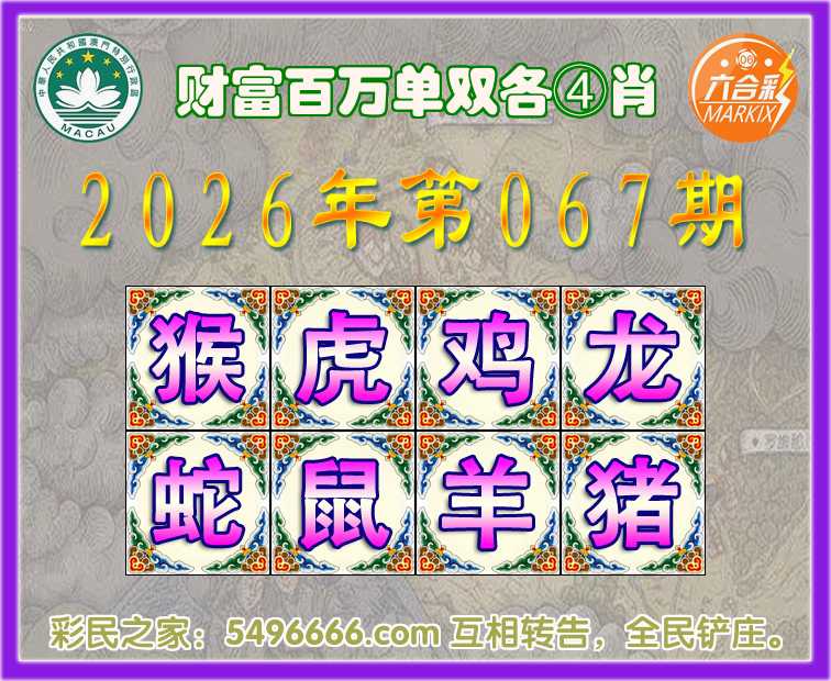 067期:《财富百万》 🌸单双各④肖🌸开:虎05
