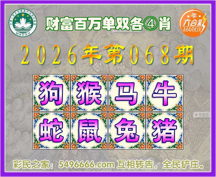 068期:《财富百万》 🌸单双各④肖🌸开:猴23