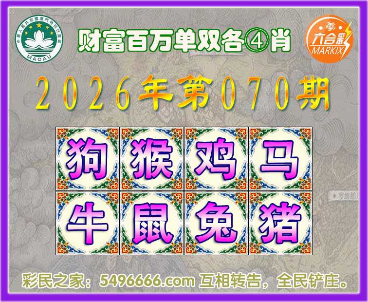 070期:《财富百万》 🌸单双各④肖🌸开:马25